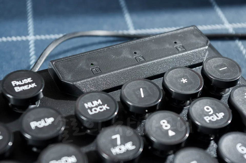 다른 키보드와 달리 원형의 키가 넓은 간격을 두고 있으며 하판(?) 위에 개별적으로 떠 있는 것처럼 생겼다. 그래서 얼핏 보면 타자기 같은 느낌이라 보기에도 제법 만족스럽고 같은 이유로 키 사이가 넓어 타 제품처럼 갑갑해 보이는 모습도 없다.