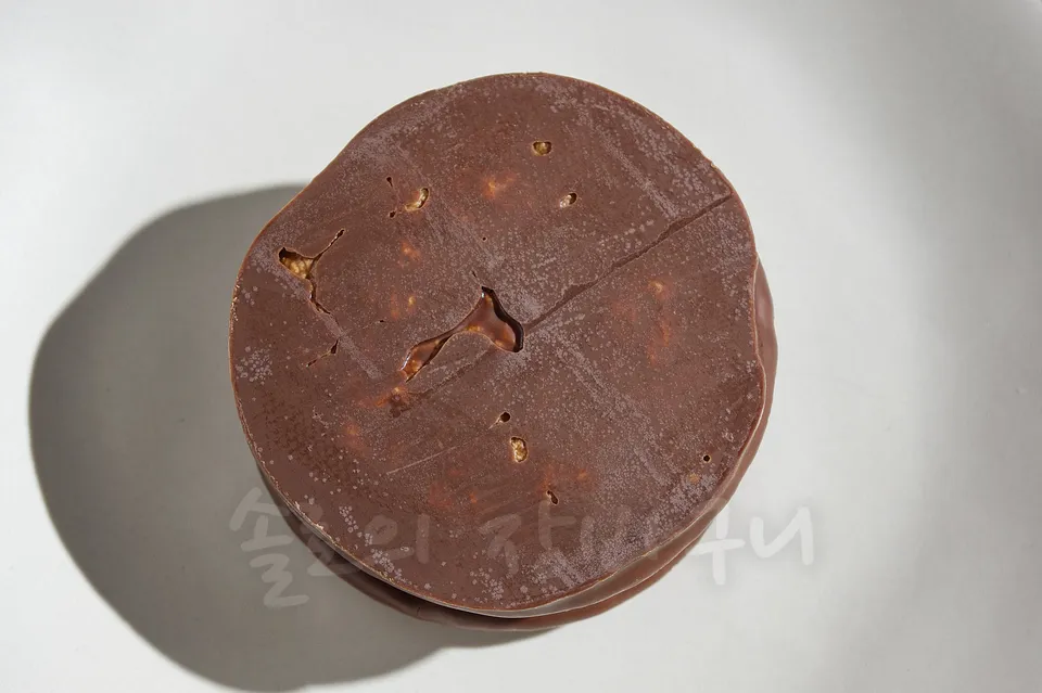 전체적으로 오리온이나 롯데의 초코파이와 비슷한데, 제조사가 롯데라서 더 그럴지도 모르겠고 제조사가 같으니 당연하겠지만 초코파이 바닥면의 초콜릿 코팅 모양도 롯데 초코파이와 같다.